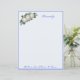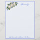 Adicione um estilo exclusivo e pessoal a artigos de papelaria concebidos por medida. Papel de carta Personalizado de Rosas Brancas Florais Verdes Elegantes e Românticas Azul. Personalize com o nome, as iniciais, a mensagem, a citação ou qualquer outra coisa que desejar. Use a segunda linha para endereço, site ou qualquer outra informação - pode ser removida se desejar. A folha traseira corresponde ao tema da cor.