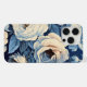 Antigas rosas brancas e margaridas em um rico fundo azul-indigo.