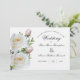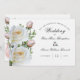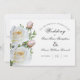 Simples, tradicional Convite para Casamento de Rosa Branca. Casal de casamento na frente, detalhes de casamento e recepção nas costas.