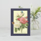 Um convite personalizado de arte botânica com rosas vermelhos e brancos em pergaminho falso e fundo azul profundo. Esta versão única combina duas ilustrações de safra; Rosas de chá e Rosa Rosa Rosa Rosa de Orleans. Duas borboletas coloridas acendem as flores. Os nomes dos rosas e do artista são escritos em script na parte inferior do trabalho de arte. Clique em Personalizar para alterar fontes, dimensionar e muito mais, até salvar seu design para mais tarde.