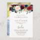 Felicite o seu evento de casamento russo espanhol com este convite de casamento clássico de rosas ricos. O design apresenta lindas flores rosa, pincéis, azuis, marinhos e burgundy pintadas manualmente com folhas verdes, bem agrupadas em buquês elegantes para embelezar seus cartões de convite para eventos.