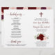 Este belo programa foi projetado para uma cerimônia católica. Ele apresenta um design bócio rústico com rosa de aquarela pintada manualmente em tons de burgundy, vermelho e rosa-pincel. Há um crucifixo ou cruz, com elegante caligrafia para os nomes dos casais e títulos. O dentro estendeu o espaço para todos os detalhes da cerimônia, enquanto o verso tem informações sobre a festa noiva junto com uma breve nota de agradecimento. É uma bela maneira de dar as boas-vindas aos seus convidados e facilitar-lhes o seguimento da cerimônia. Nota: Os programas são enviados como folhas de papel achatadas, você mesmo precisará dobrá-las.