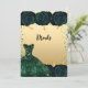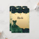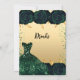 Um fundo com aparência de ouro falso, com brilho falso verde, brilhos, rosas verdes e um vestido verde. Adicione suas escolhas de bebidas, uma a uma cartão.