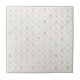 Azulejo branco com rosas dourados.