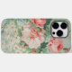 Reprodução britânica de arte de Tecido Vintage de 1890, com rosas cor-de-rosa e margaridas gerberantes sobre fundo verde-claro com fita azul.