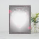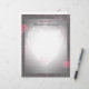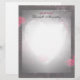Belo papel de carta tem um design cardíaco brilhando no meio e elegantes bordas pretas com rosas vermelhas acrescentando saltos de cor.