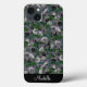 Esta capa de telefone tem um padrão de rosas florais elegante em rosas brancas e pretas em uma esteira de jardim com fundo violeta. Você pode fazer o padrão neste caso maior ou menor, se quiser. Personalize esta capa de telefone com seu nome na parte inferior ou exclua o nome e o quadrado para um caso de padrão limpo. Uma bela capa de telefone floral elegante desenhada que faz um presente de excelente ou um presente para si mesmo.