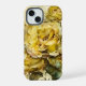 Um belo padrão de grandes rosas amarelas com trim verde.