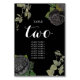 Um design de casamento com rosas pretos e vinhas penduradas no Halloween gótico. Um design de Halloween que usa florais botânicos negros e escuros junto com a tipografia da caligrafia de vintage. Um design gótico na moda ideal para temas de casamento de Halloween. Um único design de mesa de casamento de rosas pretos. Os convites de casamento e outros artigos de papelaria também estão disponíveis. Personalize o número e adquira cada número mesa individualmente de acordo com quantos números de tabela você precisa.
