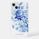 Rosas e flores silvestres lindas e tradicionais do estilo aquarela azul/branco da China com campo de texto para seu nome ou monograma.
