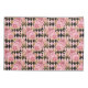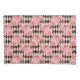 Bonito a rosa! Grandes rosas cor-de-rosa com embelezamento de ouro e folhas sobre fundo de diamante de arlequim preto e rosa a negrito