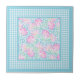 Um Azulejo cerâmico bonito, com um padrão de rosas cor-de-rosa sobre um fundo azul-céu, pontilhado com borboletas brancas dentro de uma fronteira de Sky Blue e White Check Gingham. Adicione uma moldura de madeira para fazer uma trivialidade útil e decorativa!