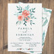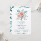 Folhas verdes de inverno, rosas cor-de-rosa pinceladas, com convites para casamentos de pínecone na fronteira são fáceis de personalizar. O trabalho de arte de folha de água é versátil para crosta, cor-de-rosa poeirento, terracota e paletas de cor verde de sábado. Belo design de planta de eucalipto é perfeito para seus convites para casamentos no inverno.