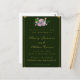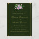 Agora que seus planos de casamento foram finalizados, informe seus amigos e família com este elegante convite de casamento apresentando rosas cor-de-rosa no florescimento do cheio entre a folhagem verde, e a inscrição dourada no fundo verde-escuro cercada por bordas douradas.
