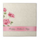 Simples rosas cor-de-rosa elegante e um dia de as mães floral bege- feliz. Modelo de azulejo de cerâmica personalizável