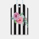 Diga obrigado em estilo com esta bonito etiqueta de presente. Design floral cor-de-rosa adorável a olho, pegando faixa branca e preta.