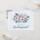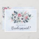 Belo design de cartão "serás minha dama de honra" com flores cor-de-água rosa e branca num fundo azul claro. Itens correspondentes disponíveis.
