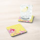 Esta rosca rosa no conjunto de Portas copos de cortiça amarela apresenta rosas cor-de-rosa e um fundo de bolinhas amarelo e branco. Excelente para um Chique ou decoração de estilo de algodão.