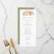 Este cartão de cardápio formal apresenta um buquê de cor d'água de rosa, pêssego e rosas amarelas claras com verde no topo da frente. Seu texto personalizado está em ouro escuro no centro. Tudo é colocado sobre um fundo branco elegante, e a parte de trás da placa é ouro, combinando o texto. Há muito espaço para fazer mudanças. Certifique-se de ver os convites de casamento e outros produtos de casamento na nossa loja.