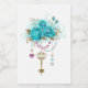 Chave de ouro antiga com rosas de turquesa de tendência, decoradas com folhas de ouro branco e miçangas cor-de-rosa e azuis. Cor agradável. Rosas de turquesa. Ouro branco. Tifania azul.