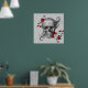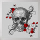 Esboço preto e branco de um crânio com belas rosas vermelhas e espirais pretas ao redor. Isso faria uma incrível adição para o seu quarto de jogo ou quarto de dormitório da faculdade!
