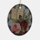 Lindo enfeite de Natal de rosas vitorianas e um livro que diz "Rosas Emblema do Amor."