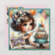 Garota doce decorando um bolo de aniversário, celebrando o aniversário de Roslyn. As saudações no cartão são "Feliz Aniversário Roslyn". Na parte traseira da placa está uma pequena versão da imagem frontal e muito espaço para escrever uma mensagem. Feito com o auxílio do AI Bing.