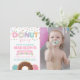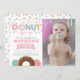 Convite de aniversário da rosquinha O efeito de brilho dentro desta design é uma imagem digital feita para parecer uma verdadeira brilha. Qualidade elevada e ainda deslumbrante, mas não será utilizada qualquer brilho real no fazer deste produto. Todos os designs são © PIXEL PERFECTION PARTY LTD