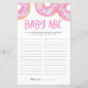 Bebê ABC! Preencha um nome para cada letra do alfabeto. A primeira pessoa a terminar ganha! | Adicione esta placa divertida de jogo Baby ABC ao seu chá de fraldas. Esta placa de jogo trivia chá de fraldas apresenta rosquinhas cor-de-água cor-de-rosa com bordas coloridas. Personalize adicionando nomes, eventos e datas. Este rosquinha cor-de-rosa Baby ABC é perfeito para qualquer época ou tema de chá de fraldas.