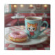 Um azulejo de cerâmica giro para adicionar algumas vibrações retrorreflectoras à sua cozinha, na sua casa de trás ou no seu projeto de construção. Uma rosquinha de morango e uma xícara de café quente no restaurante. A xícara de café tem um gato Kawaii fofo. Pasta branca retrorra cores como rosa e lacrimejo.