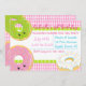 Você ROSQUINHA quer perder esta festa! Que doce! Comece a comemorar com este belo convite de aniversário. Estes convites têm um fundo de gingham rosa e branco. Há três rosquinhas nos cantos, uma com cobertura de verde limão, rosa e branca com aspersores. Há um retângulo branco através do centro com uma borda estriada de verde limão. Personalize com suas informações de partido no centro. Personalize com fontes coloridas qualquer estilo que você quiser.