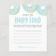 Adivinha o sabor de cada jarro de comida bebê. A pessoa com as vitórias mais corretas! | Adicione esta diversão Adivinha o cartão de jogo Baby Comida Flavor ao seu chá de fraldas. Esta placa de jogo trivia chá de fraldas apresenta rosquinhas de cor d'água azuis com bordas coloridas. Personalize adicionando nomes, eventos e datas. Esta rosquinha azul acha que o jogo da Comida do bebê é perfeito para qualquer época ou tema de chá de fraldas.