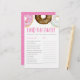 Junte-se aos convidados para encontrar as respostas para as perguntas! Adicione esta diversão Encontre o cartão de jogo Convidado ao seu chá de fraldas. Esta placa de jogo trivia chá de fraldas apresenta rosquinhas cor-de-água rosa, branca e chocolate com bordas coloridas. Personalize adicionando nomes, eventos e datas. Este jogo de chá de fraldas com rosquinhas de aquarela é perfeito para "É uma chá de fraldas Rapariga".