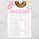 Adivinha quem disse. Era a mãe ou o pai? | Adicione este chá de fraldas divertido e divertido Que Ele Disse Que Ela Disse Cartão de Jogo ao seu evento. Esta placa de jogo de chá de fraldas apresenta rosquinhas cor-de-água rosa, branca e chocolate com aspersores coloridos. Personalize adicionando nomes, eventos e datas. Este jogo de chá de fraldas com rosquinhas de aquarela é perfeito para "É uma chá de fraldas Rapariga".