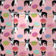 tecido de cães doces com boston terriers e rosquinha cor-de-rosa e bonito