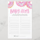 Que item de bebê começa com cada carta? Você consegue adivinhar o que a futura mãe escreveu? | Adicione este cartão de jogo do Baby Items ao seu chá de fraldas. Esta placa de jogo trivia chá de fraldas apresenta rosquinhas cor-de-água cor-de-rosa com bordas coloridas. Personalize adicionando nomes, eventos e datas. Este rosquinha Baby Items cor-de-rosa é perfeito para qualquer época ou tema de chá de fraldas.