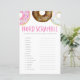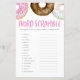 Adicione este cartão de jogo de palavras de bebê divertido ao seu chá de fraldas. Esta placa de jogo de chá de fraldas apresenta rosquinhas cor-de-água rosa, branca e chocolate com aspersores coloridos. Personalize adicionando nomes, eventos e datas. Este jogo de chá de fraldas com rosquinhas de aquarela é perfeito para "É uma chá de fraldas Rapariga".