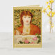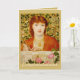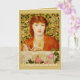 Cartão comemorativo feito a partir de uma pintura do artista pré-raphaelita inglês Dante Gabriel Rossetti (Regina Cordium, 1866). Textos personalizáveis: Parabéns (frente) neste dia especial (dentro direita). O modelo é Alexa Wilding, que frequentemente apareceu na obra de Rossetti a partir de primavera de 1865.