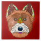 Cachorro branco único da Highland Ocidental, com padrões abstrato coloridos e ousados em um fundo vermelho. Popular com amantes de cães e amantes de animais de estimação e amantes de cães de resgate.