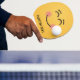 Um rosto sorridente, com olhos sorridentes e bochechas rosadas. Texto personalizado.