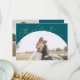 Cartão de agradecimento de casamento elegante e minimalista com uma grande moldura de arco verde e uma fonte cursiva que diz "obrigado" no topo. Você pode adicionar uma segunda foto no verso com uma mensagem.
