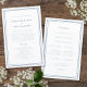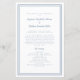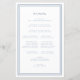 Elegante programa de cerimônia de casamento em azul empoeirado e branco com design moderno e simples com uma moldura dupla em azul empoeirado em um fundo branco crocante. A redação tradicional e clássica fornece sofisticação atemporal. Personalize os detalhes da cerimônia de casamento para seus convidados com letras e caligrafia modernas em azul empoeirado. O verso do cartão combina com azul empoeirado em branco crocante e é todo sobre sua equipe de casamento. Para obter resultados ótimos, substitua os detalhes do modelo pelos seus próprios detalhes, deixando espaço entre os parágrafos como no exemplo. Use letras maiúsculas e minúsculas onde especificado. Sinta-se à vontade para entrar em contato comigo em invitationsuites@gmail.com ou com a função de mensagem se tiver alguma dúvida sobre este ou qualquer outro produto ou tiver uma solicitação de cor personalizada.