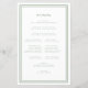 Elegante programa de cerimônia de casamento em verde-sage e branco com design moderno e simples com uma moldura dupla em verde-sage rústico em um fundo branco crocante. A redação tradicional e clássica fornece sofisticação atemporal. Personalize os detalhes da cerimônia de casamento para seus convidados em letras de caligrafia moderna e script. O verso do cartão combina com verde-sage em branco crocante e é todo sobre o seu casamento. Para obter resultados ótimos, substitua os detalhes do modelo pelos seus próprios detalhes, deixando espaço entre os parágrafos como no exemplo. Use letras maiúsculas e minúsculas onde especificado. Sinta-se à vontade para entrar em contato comigo em invitationsuites@gmail.com ou com a função de mensagem se tiver alguma dúvida sobre este ou qualquer um de nossos produtos ou tiver uma solicitação de cor personalizada.