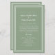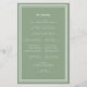 Elegante programa de cerimônia de casamento verde-sage e branco com orçamento acessível apresenta um design moderno simples com uma moldura dupla em branco crocante em um fundo verde-sage moderno. Palavras tradicionais e clássicas fornecem sofisticação atemporal. Personalize os detalhes da cerimônia de casamento para seus convidados em escrita e letras modernas. O verso do cartão combina com letras brancas em um fundo verde-sage rústico e é tudo sobre o seu casamento. Para obter resultados ótimos, substitua os detalhes do modelo pelos seus próprios detalhes, deixando espaço entre os parágrafos como no exemplo. Use letras maiúsculas e minúsculas onde especificado. Sinta-se à vontade para entrar em contato comigo em invitationsuites@gmail.com ou com a função de mensagem se tiver alguma dúvida sobre este ou qualquer um de nossos produtos ou tiver uma solicitação de cor personalizada.
