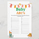 Qual item de bebê começa com cada letra? A primeira pessoa a completar a lista vence! Um jogo alegre de chuveiro de bebê com uma narrativa básica.