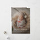 Celebre o primeiro Natal do seu bebê com este cartão de anúncio, que apresenta uma tipografia elegante e um formato fotográfico aconchegante e suave. A frente mostra os detalhes de seu recém-nascido em um design eterno, enquanto a parte traseira oferece espaço para três fotos adicionais e uma mensagem de feriado pessoal. Com tons neutros e uma composição pacífica, esta carta de lado duplo captura a magia silenciosa de sua família em crescimento. Uma maneira digna de compartilhar amor e alegria nesta temporada.
