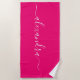 toalha de praia na moda com um nome de guião branco elegante em fundo rosa quente. Personalize com seu nome.