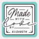 Adesivo Square Feito com Amor apresenta uma tipografia moderna de 'Feito com Amor' em um design de rótulo. O produto inclui um modelo para personalizar com seu nome ou empresa. Clique em Personalizar e personalize ainda mais para alterar a cor do plano de fundo.