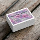 O rótulo desta caixa de sabão edível floral mede 3 polegadas por 2 polegadas (76 mm por 51 mm) e é impermeável. Ele apresenta um fundo com flores rosas e roxas contendo texto preto com espaço para o nome da sua empresa, nome do produto, ingredientes, descrição do produto e informações de contato comercial. Esta etiqueta é concebida como uma etiqueta destinada a caixas de sabão ou bares de sabão, mas poderia também ser utilizada como uma etiqueta destinada a poços ou velas cosméticos.