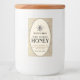 Personalize a sua etiqueta de mel com o seu nome, endereço, nome comercial, peso líquido do mel, descritores e informações de contato. Abelha heráldica venenosa com borda oval sobre fundo de espiral dourado. Excelente para garrafas maiores.